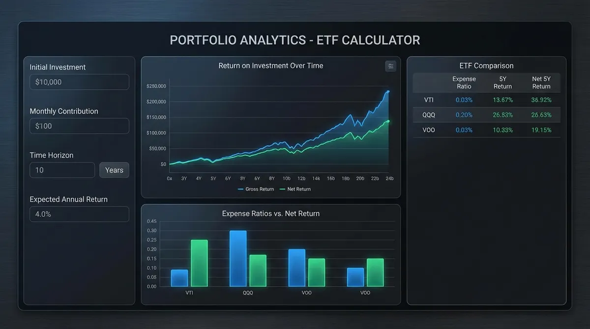 Most investors underestimate the impact of fees. A 0.75% expense ratio might sound small, but on a $100,000 portfolio, it can cost you over $40,000 in lost returns over 25 years compared to a low-cost 0.05% ETF. Our calculator reveals these hidden costs instantly.
